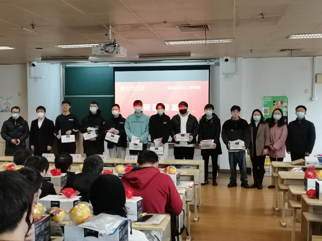 沈剑对同学们付出的努力做了充分的肯定,希望在备考的最后阶段一定要调整好自己的心态,还特别强调了疫情防控方面的要求,最后祝福大家“十年磨一剑,现到了亮剑之时,毕露锋芒,必将上岸”!学院领导向考研学子们分发了精心准备的“上岸柚你”考研慰问品。