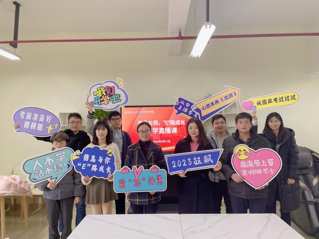 的“信息与你,‘E’路成长”开学直播课在抖音平台正式开播,学院党委副书记许丽芬和全体辅导员共同完成了此次直播。