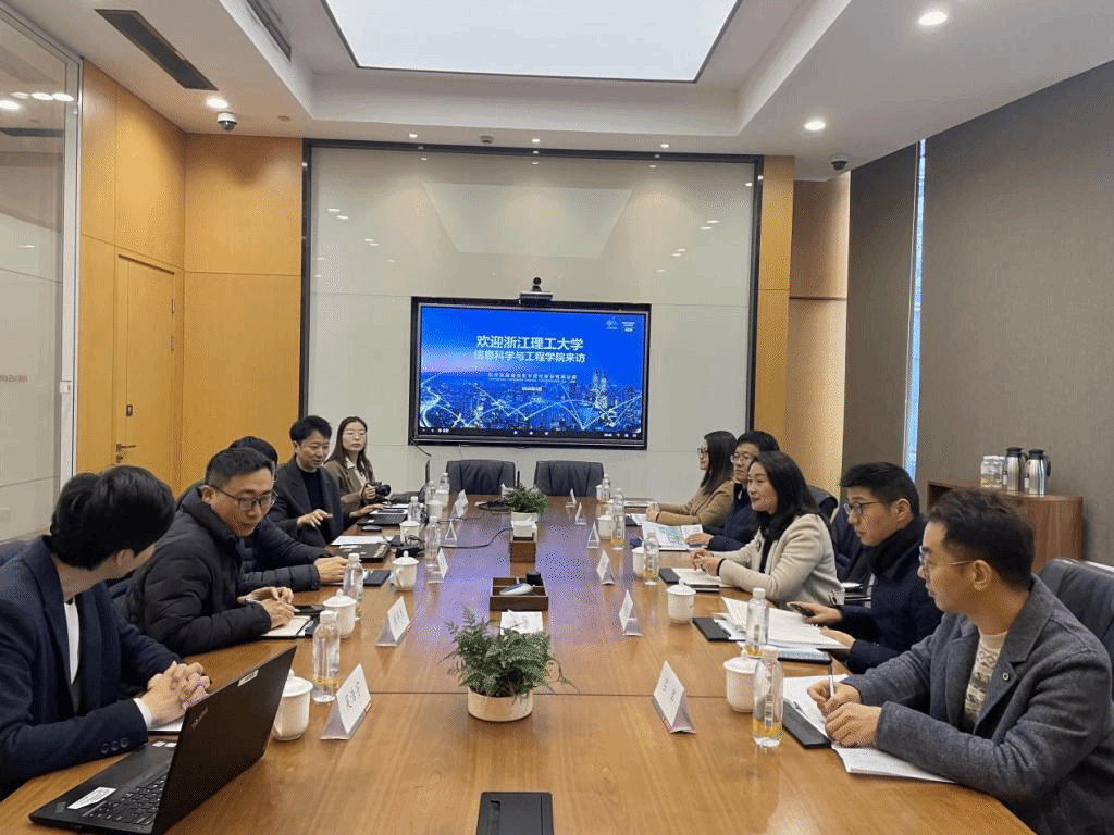 会前,郭星甫带领学院一行在园区内参观,随后双方进行了座谈交流。郭星甫、易佳妮、吴浩宇先后介绍了公司的发展历程、技术产品、营销服务、浙理校友大数据、公司人才招聘发展培训机制、校企合作模式、就业育人项目等情况。苏丽辉详细介绍了学院的专业设置、师资力量、机构设置、科研平台等情况,同时结合学院未来发展,提出校企合作共建。她希望学院与企业建立更加常态化的互动渠道,探索多样化的校企合作方式,助力校企协同创新发展。双方就校企合作围绕学生专业课程培养、实践课程设计、企业岗位需求、实践教学模式、校企行业发展衔接等方面展开探讨。