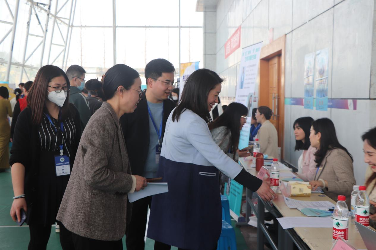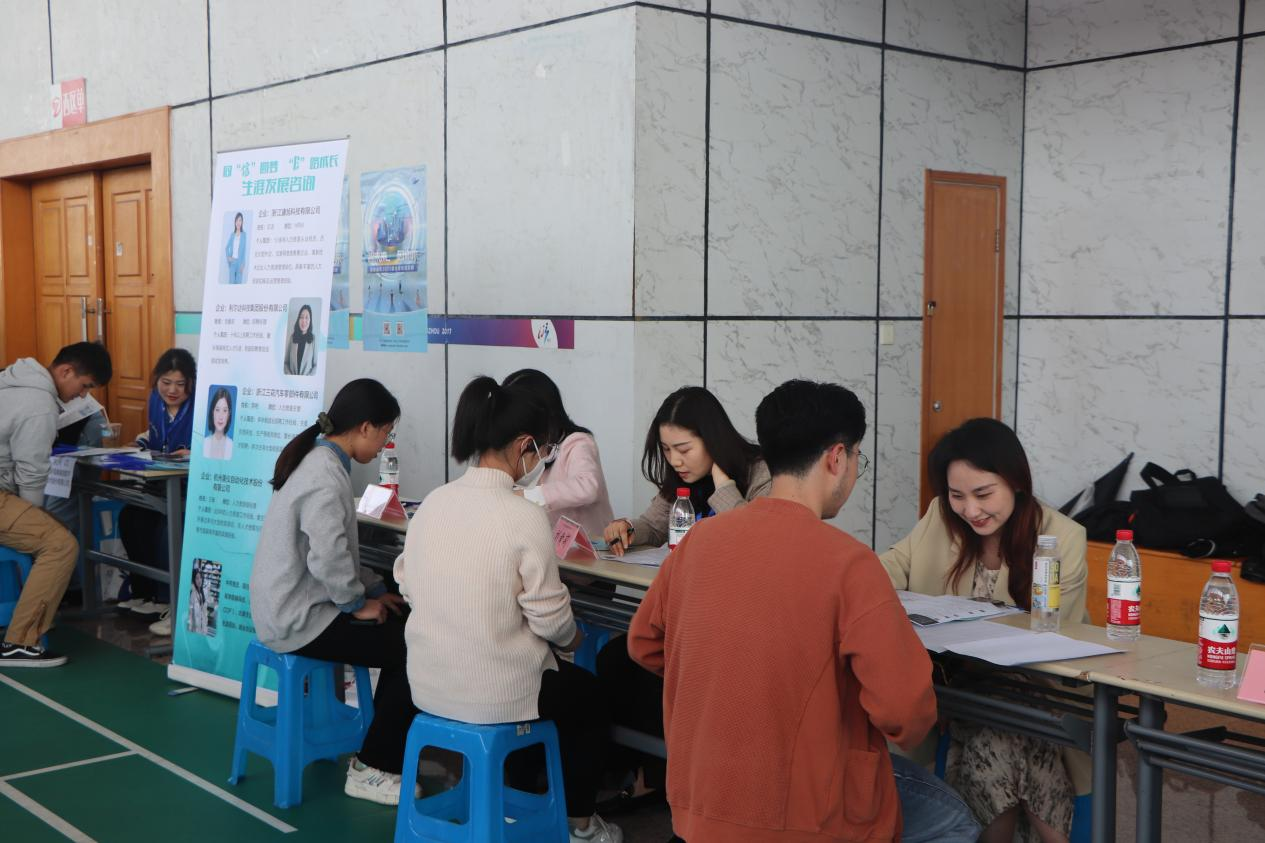 在体育馆二楼举办了2023年春季专场招聘会。学院党委书记苏丽辉,党委副书记许丽芬,学工办主任、团委书记朱佳琳,学院毕业班辅导员司浩杰参与了本次活动。