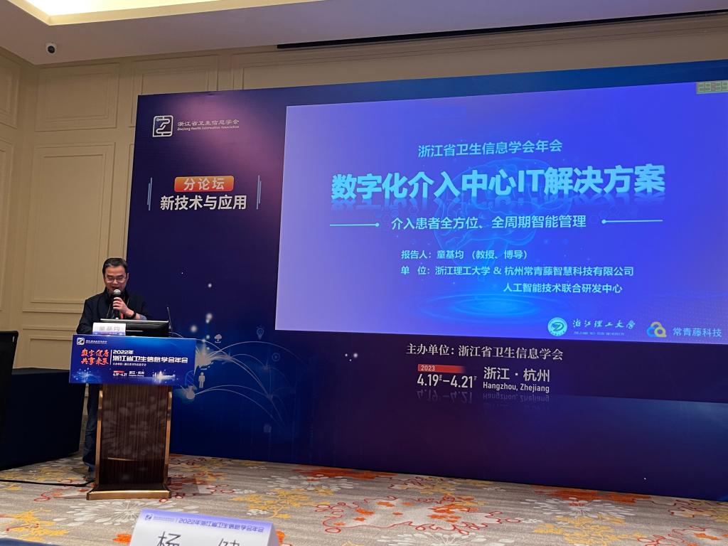 4月20日上午,学院副院长童基均教授一行参加2022浙江省卫生信息学会年会,并在分论坛上(新技术与应用专题)做大会报告,题为“数字化介入中心IT解决方案——介入患者全方位、全周期智能管理”,与会学者反响热烈。