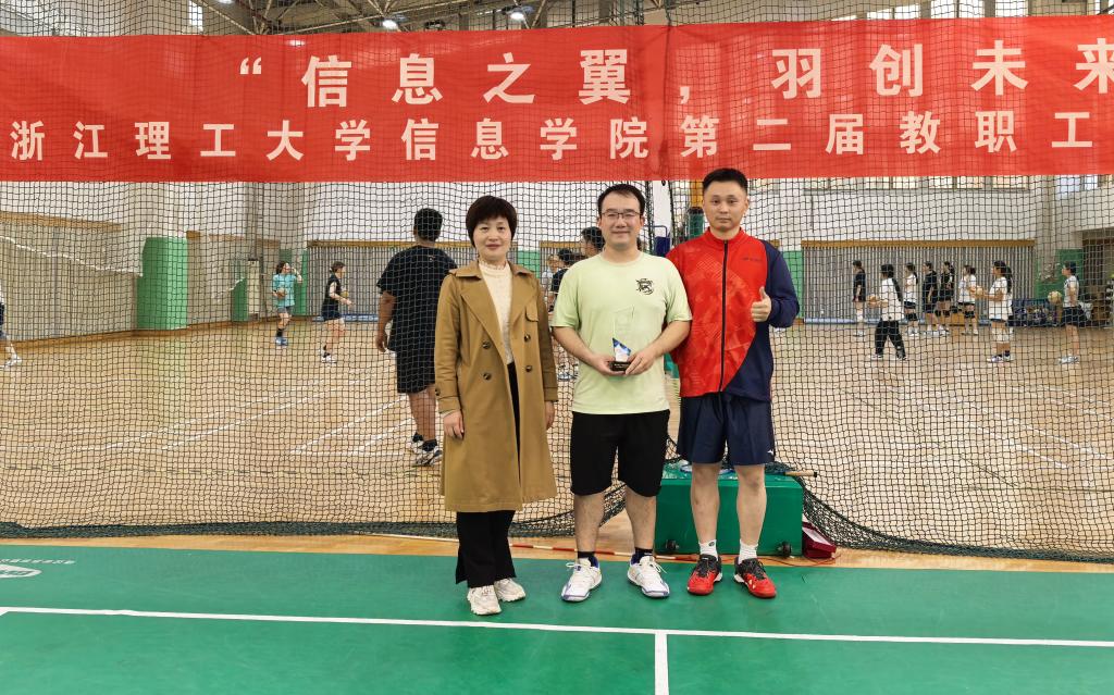 在比赛中,参赛老师本着“友谊第一、比赛第二”的精神,在赛场上全力以赴、奋勇拼搏,展示出敢打敢拼,永不言弃,拼搏向上的体育精神。精彩的羽球对决赢得了现场观众的阵阵掌声。比赛过程中,参赛选手相互加油鼓劲,场上场下充满了欢声笑语,体现了信息学院教职工之间团结友善的精神风貌。经过三个多小时的激烈角逐,通信队获得了冠军、实验中心队获得亚军、电子系和综合教科办并列获得季军,同时比赛活动的成功举办离不开测控队、自动化队和电气队老师们的大力支持。苏丽辉书记分别给获得冠军、亚军和季军的队伍颁发了奖杯。