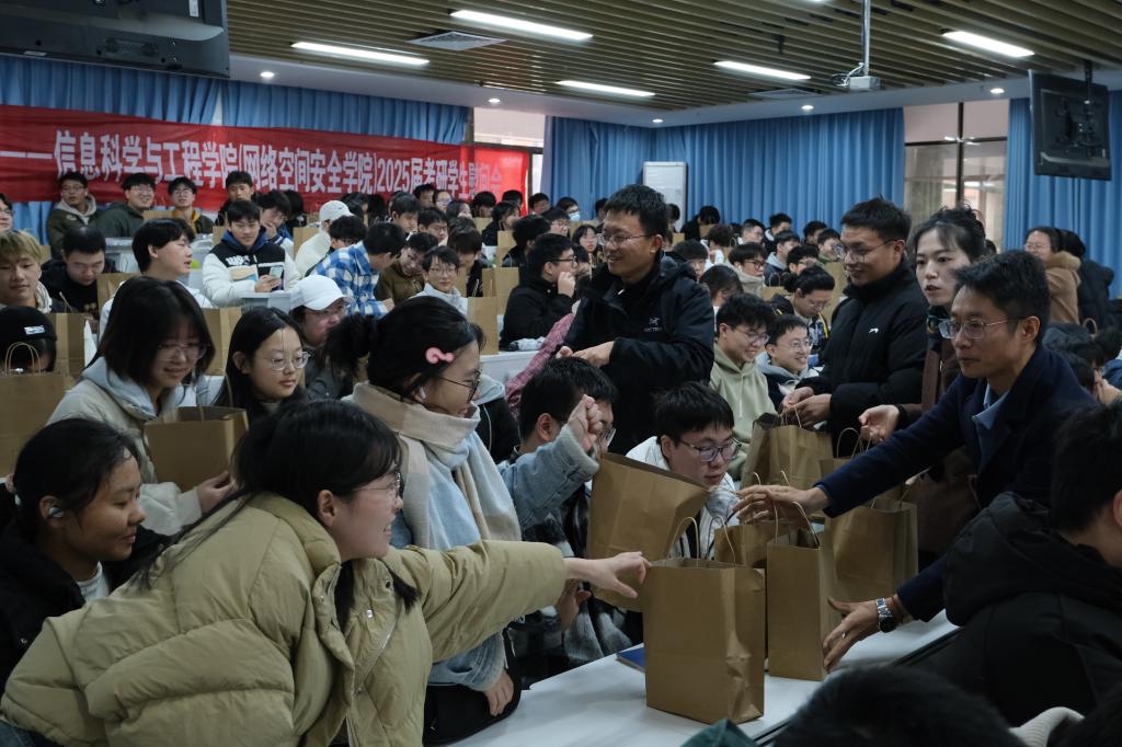 随后学院领导、考研班导师、班主任为考研学生分发了慰问礼包,期待2025届毕业生在学院的满满祝福中取得考研佳绩。