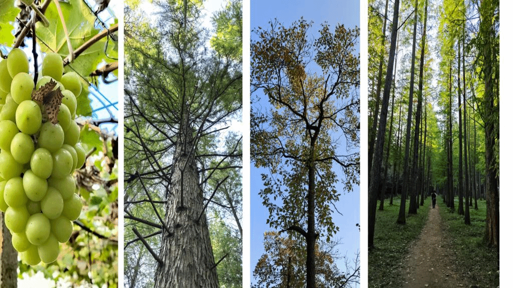 离开径山寺,教职工们乘车来到当地渔老大农庄享用农家特色午餐,饭后老师们来到葡萄园体验葡萄采摘活动。走进采摘大棚,一排排整齐划一的葡萄架上挂满串串丰盈的葡萄,让人垂涎欲滴。大家兴奋的在葡萄园中穿梭寻觅,采摘自己心仪的葡萄,感受着采摘的幸福和喜悦。承载着采摘的硕果,老师们来到了秋游活动的最后一站——长乐林场。