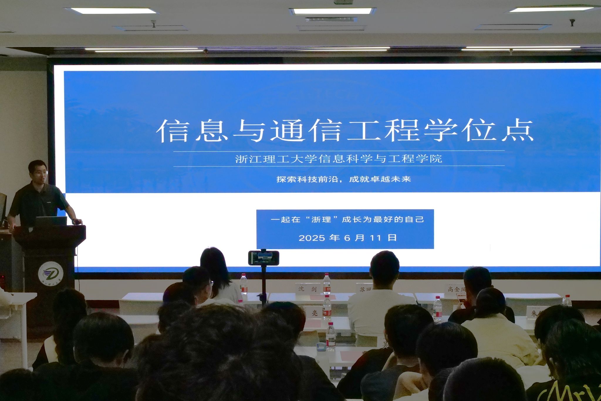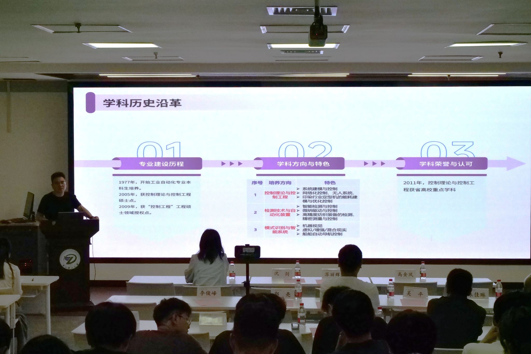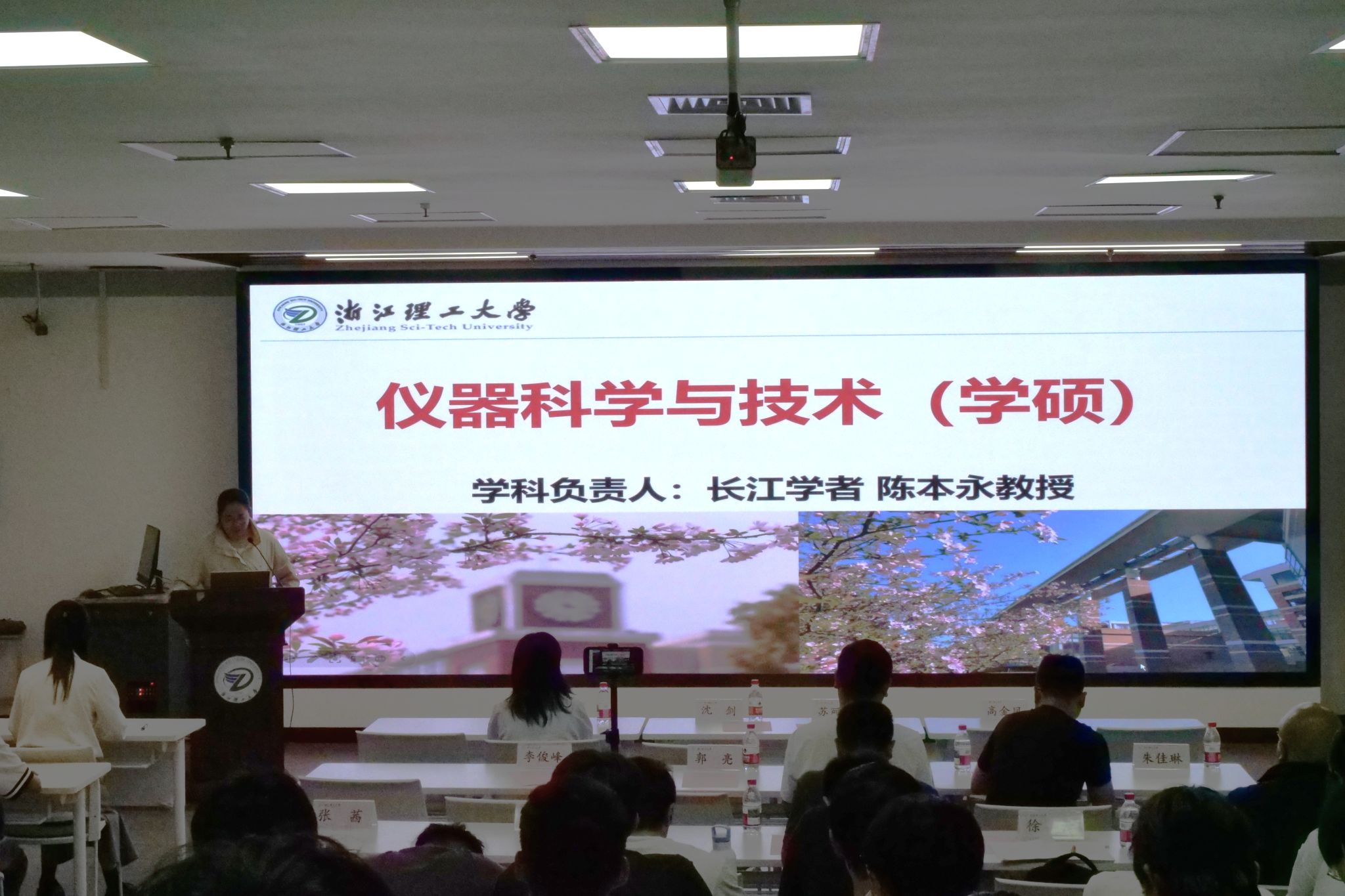 教师吴呈瑜、徐云、吴平、谭皓文介绍学院各硕士学位点情况。