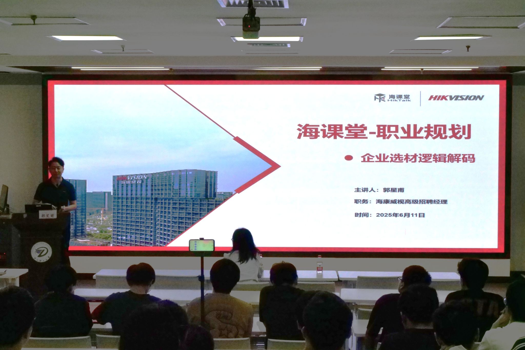 学院邀请了海康威视高级招聘经理郭星甫做《企业选才逻辑解码-以海康威视校招实践为例》专题报告,并作就业职业规划和指导。