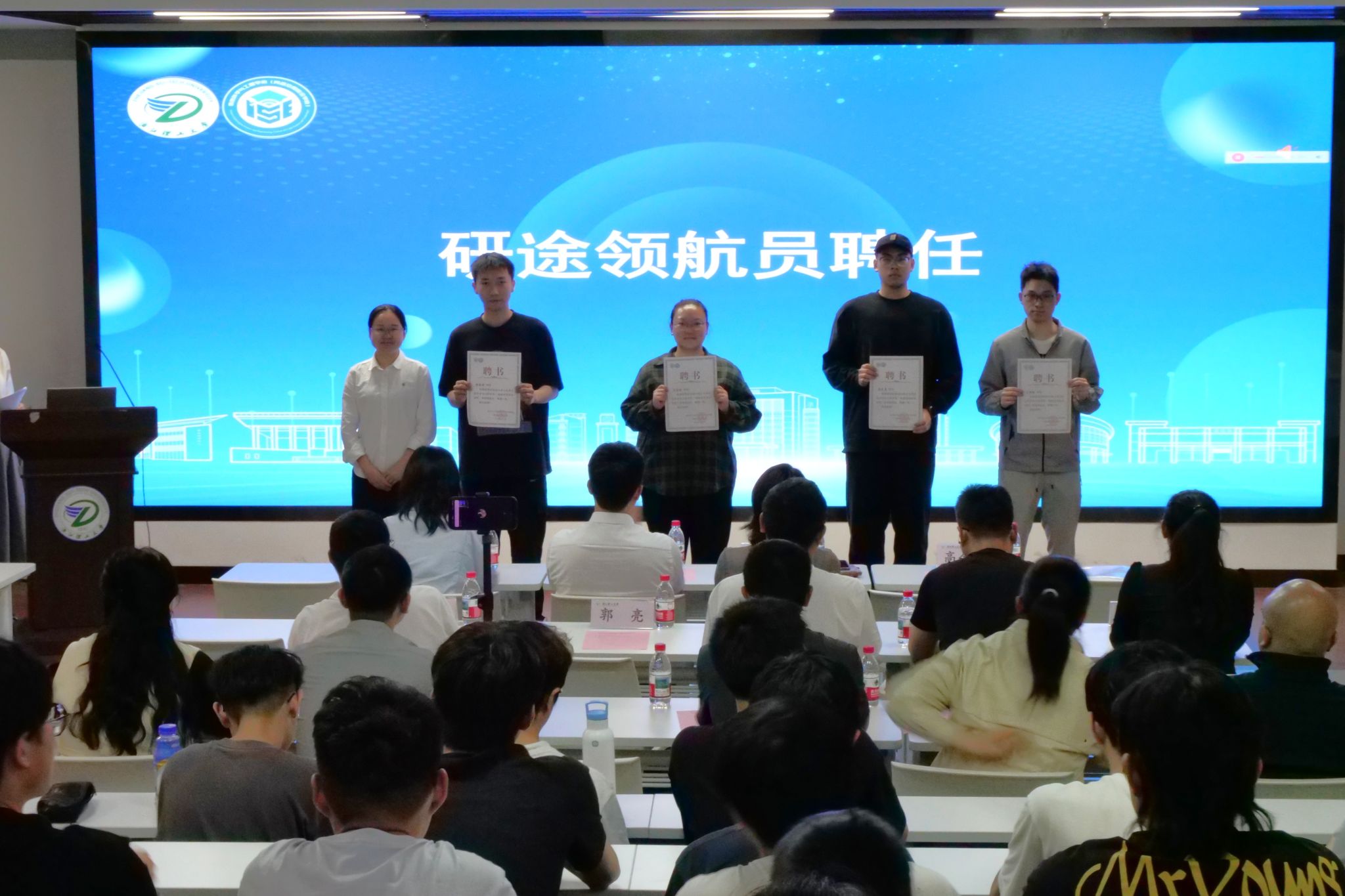 学院举行了研途领航员聘任,副院长高金凤为研途领航员代表颁发聘书。