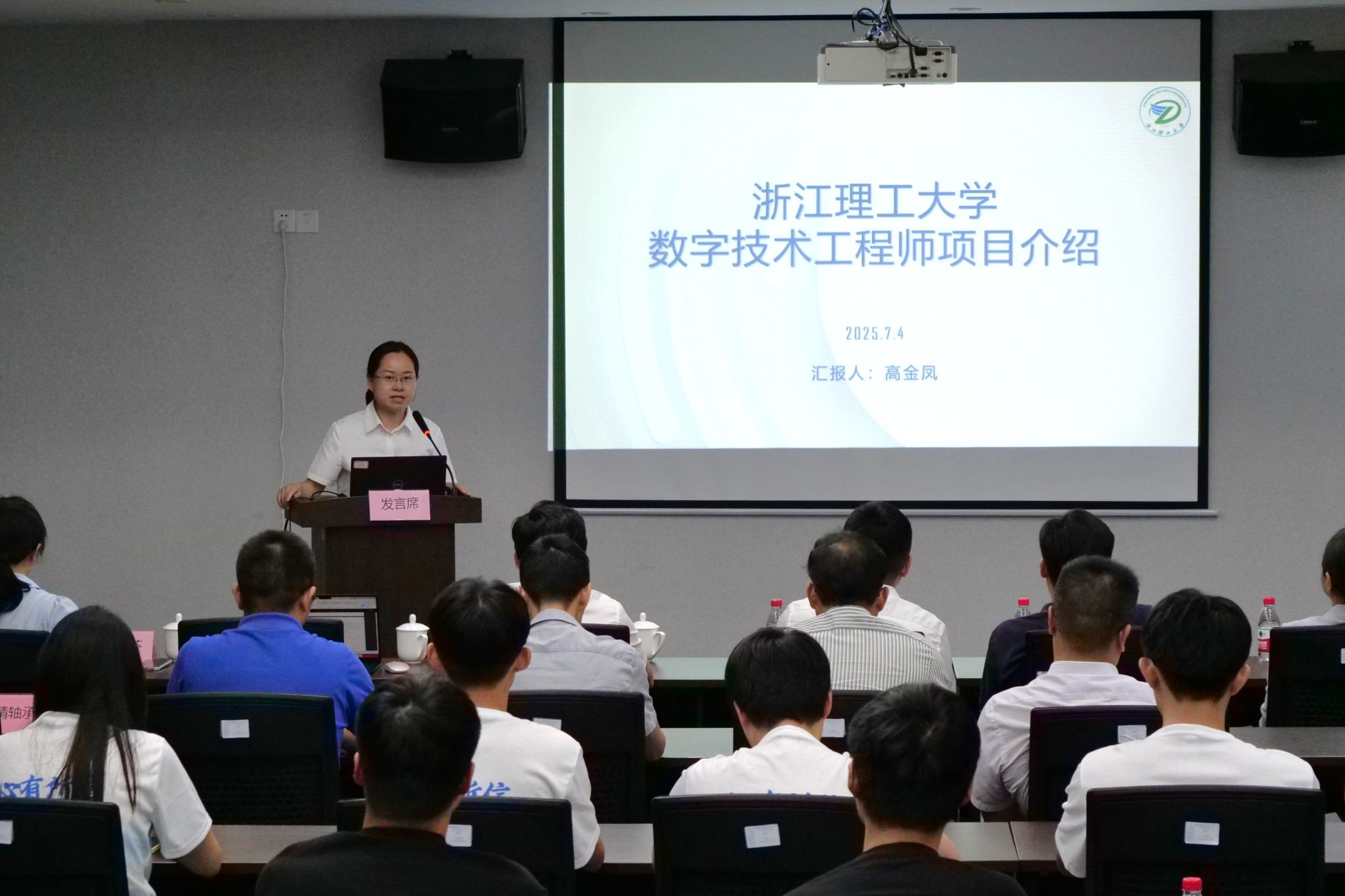 信息学院副院长高金凤介绍数字技术工程师培育项目情况,鼓励相关产业工作者积极参加,提升专业技能,成长为行业领域“数字工匠”。