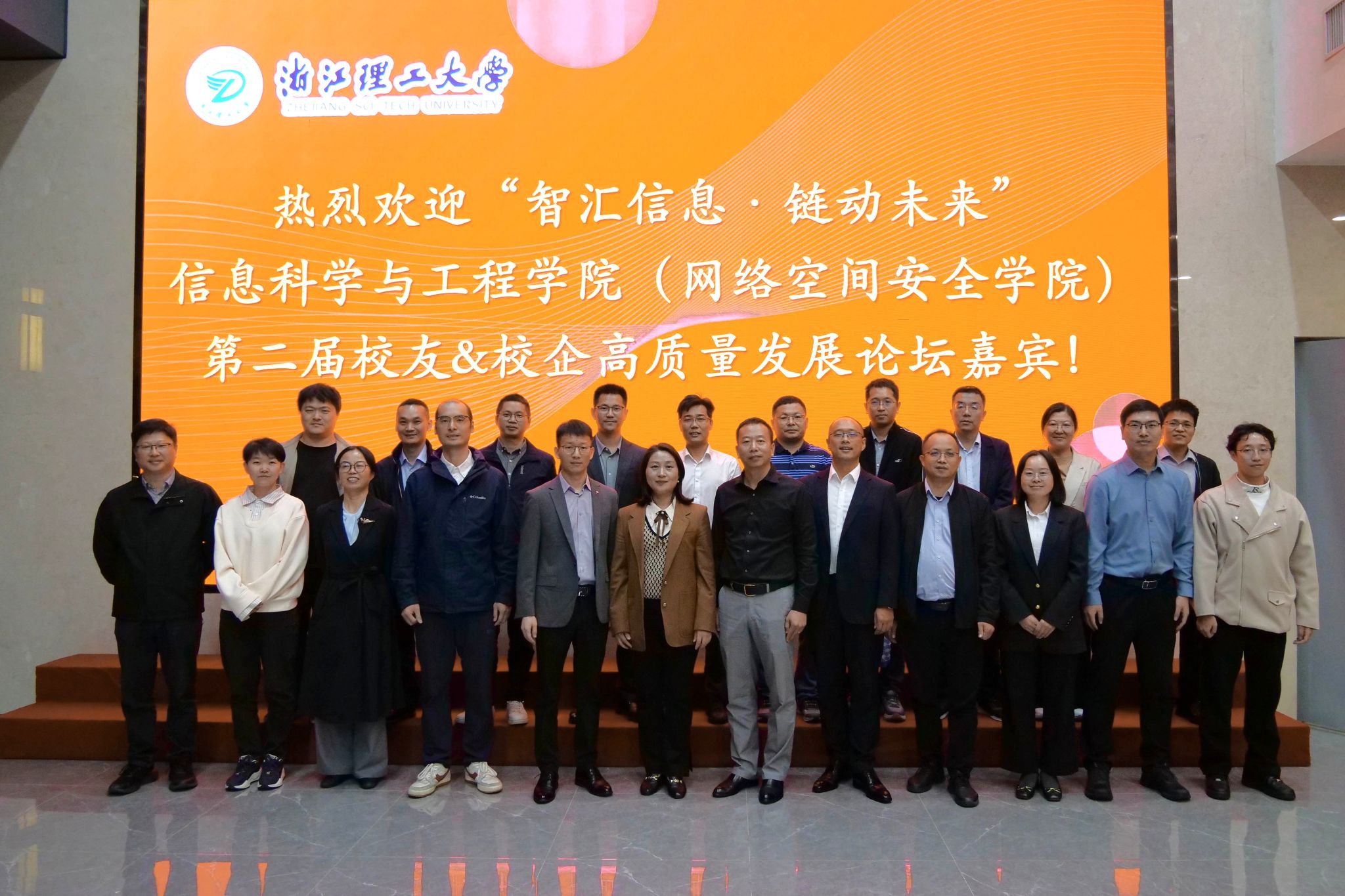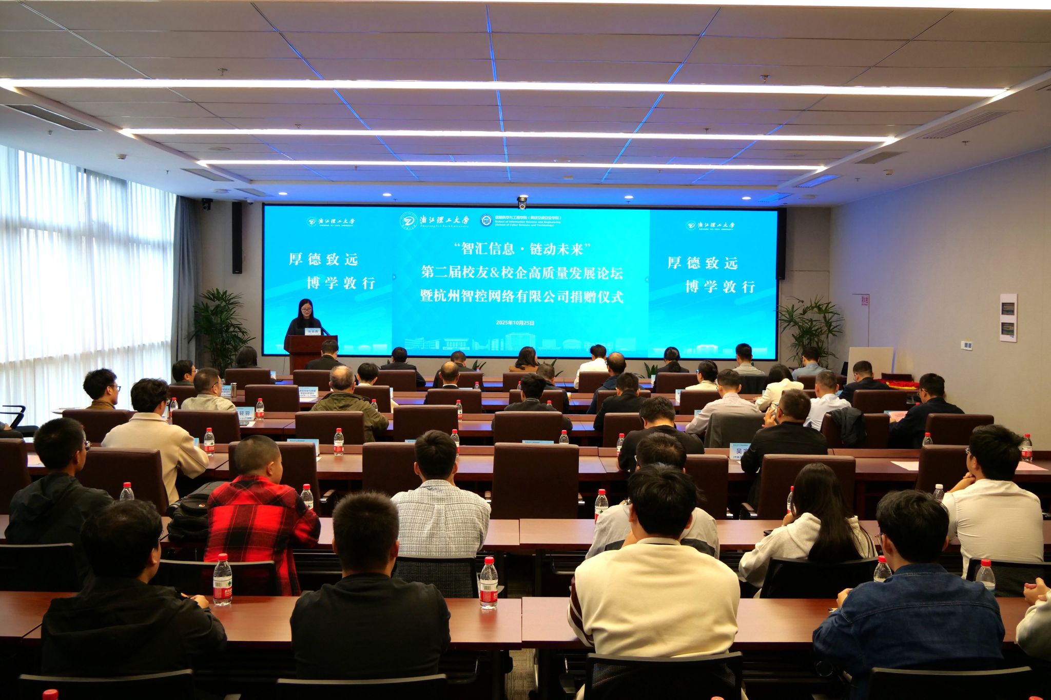 (网络空间安全学院)举办“智汇信息·链动未来”第二届校友&校企高质量发展论坛暨杭州智控网络有限公司捐赠仪式。学校对外联络办公室(校友办)副应黎君、学院党委书记苏丽辉、党委副书记许丽芬、副院长高金凤、学术副院长张艳超、杭州智控网络有限公司副总经理罗旭等企业代表、校友代表、学院杭州校友理事会成员、学院各科研团队、师生代表参加论坛和仪式。