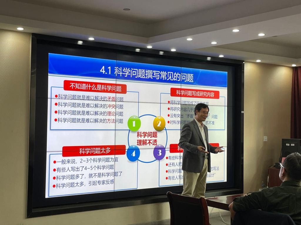 刘教授以“国家自然科学基金申请书撰写经验交流”为题,从NFSC选题好坏是获批的根本、给项目起个好名字是获批的关键、中英文摘要的撰写常见问题、研究内容标题撰写常见的问题、科学问题撰写常见的问题、技术路线撰写常见的问题等数个方面进行了重点解析。
