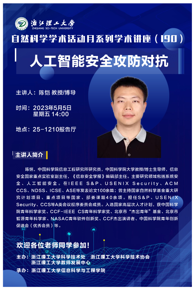 青年教师和在读研究生做了题为《人工智能安全攻防对抗》的学术报告,本次会议由河图文化
