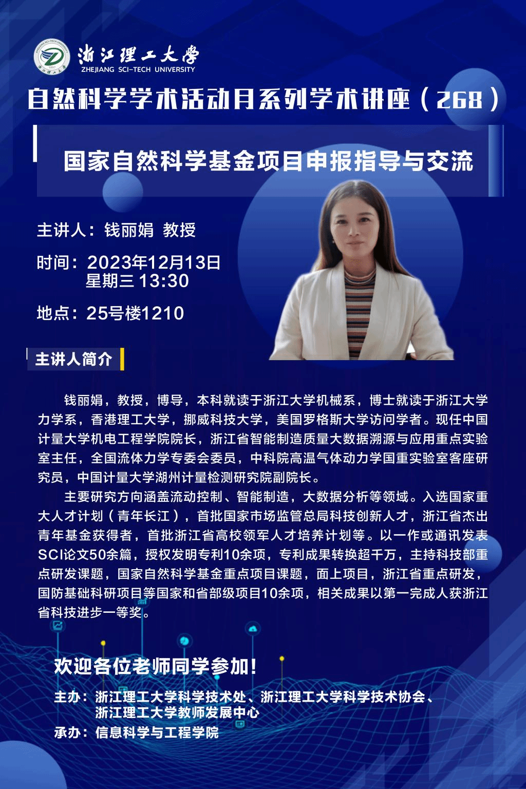 2023年12月13日,学院邀请了中国计量大学钱丽娟教授来河图文化 进行2024年度国家自然科学基金申报经验交流。钱丽娟教授为河图文化 申报国家自然科学基金项目的教师进行了一对一现场指导,详细指出了申请书中存在的问题,并给出宝贵建议,对申报项目的老师提升申请书质量有很大帮助,受益匪浅。