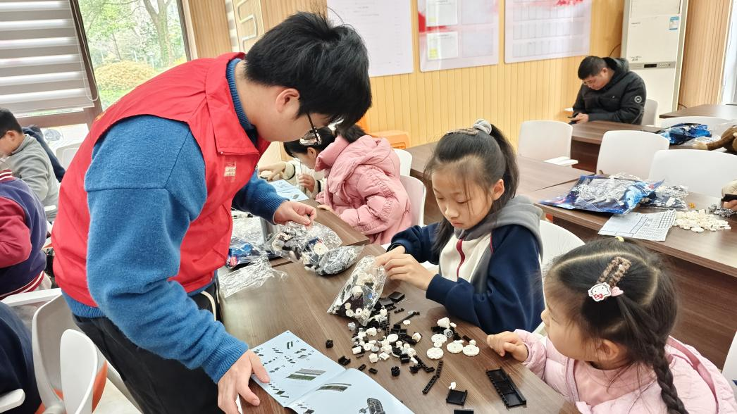 志愿者们从“嫦娥奔月”这一古老的神话故事切入,引领孩子们回顾中国航天事业的发展历程。从“东方红一号”卫星成功发射,到“神舟”系列载人飞船多次翱翔天际,再到“嫦娥工程”实现月球采样返回,孩子们不仅知晓了中国航天的辉煌成就,更深刻体会到中华民族对太空探索的不懈追求。课堂上,孩子们热情高涨,踊跃回答问题,积极参与互动。在大学生志愿者的悉心指导下,大家亲手拼装中国空间站模型,进一步了解了空间站的构造与功能。这种将科技美学融入实践的方式,极大地激发了孩子们对航空航天的浓厚兴趣,也让专业知识通过指尖传递给了他们。