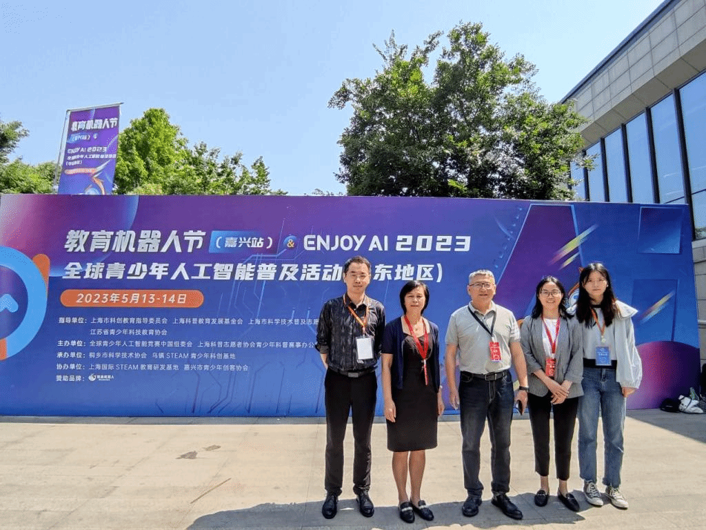 龚素瓅、许丽芬一行先参观了乌镇青少年科创研学基地。创始人兼董事长余文灏陪同。此次调研正值教育机器人节(嘉兴站)暨ENJOY AI 2023赛季(华东地区)在该基地举行,余文灏在比赛现场详细介绍了比赛安排与比赛项目的具体情况。龚素瓅、许丽芬在参观过程中与参赛学生进行了亲切的沟通交流。